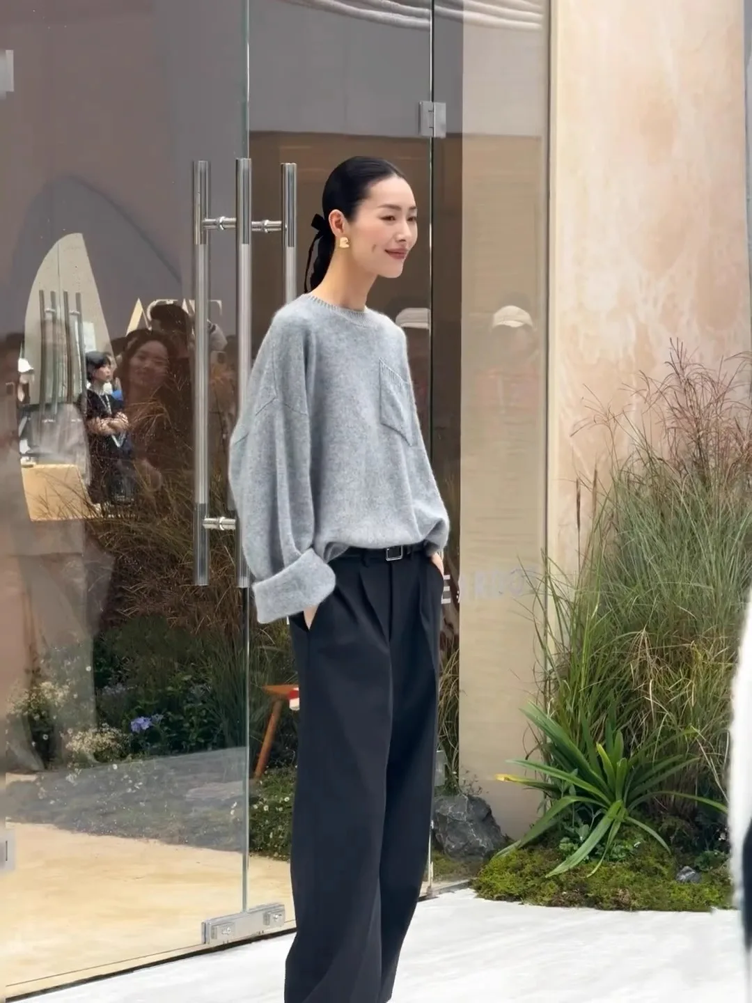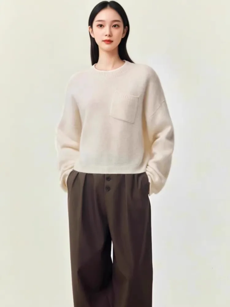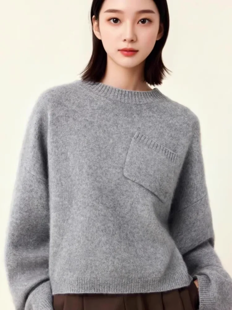 100% cashmere sweater women's crewneck loose thick sweater women's knitted bottom sweater new style