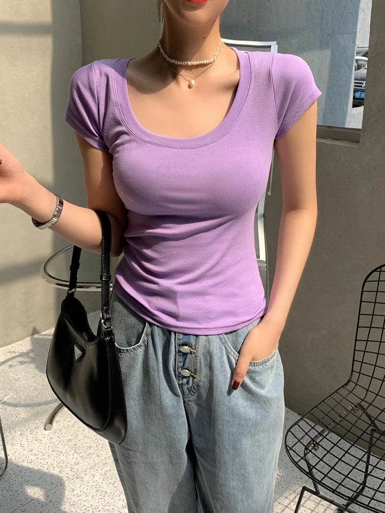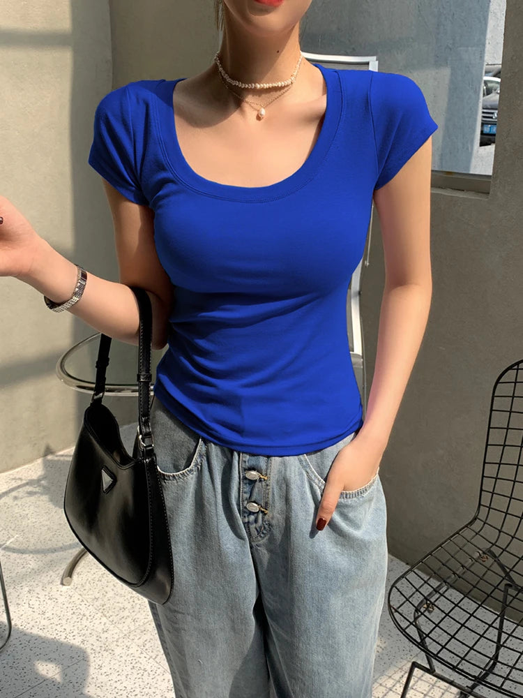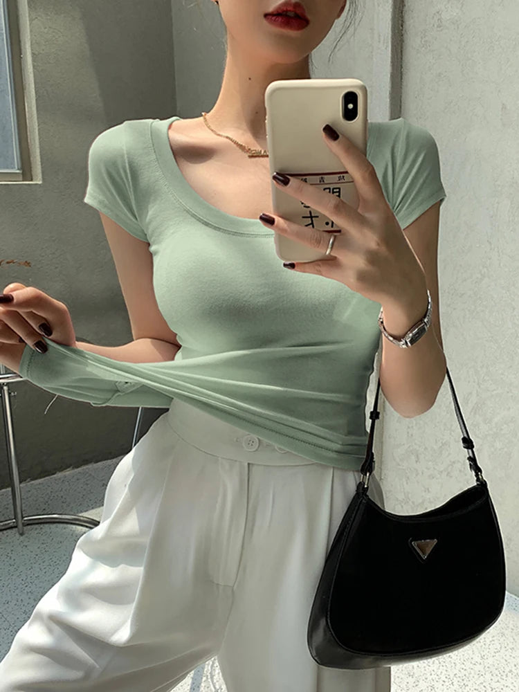 AOSSVIAO 100% Cotton T Shirt Women 2025 Summer New Slim Solid Basic Tees 16 Color Casual Tshirt Korean O Neck Tops