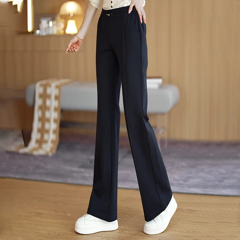 Casual micro flared pants for women's clothing in autumn 2025 new elastic high waisted elastic temperament flared pants S-3XL