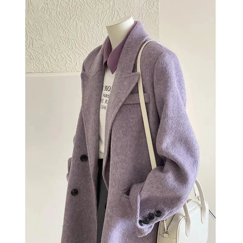 Gentle Purple wWoolen Coat For Women In Autumn And Winter 2025 New Woolen Coat With High-end Feel Small And Short Korean Style