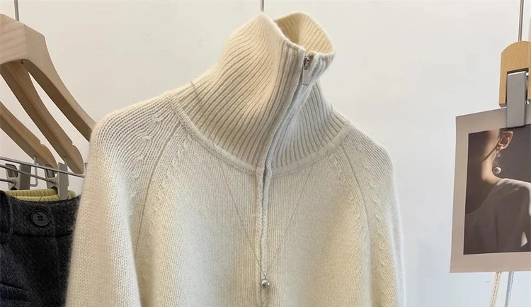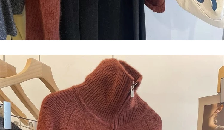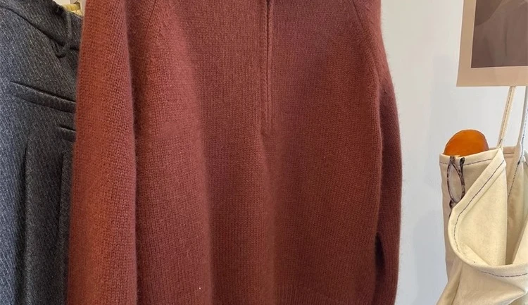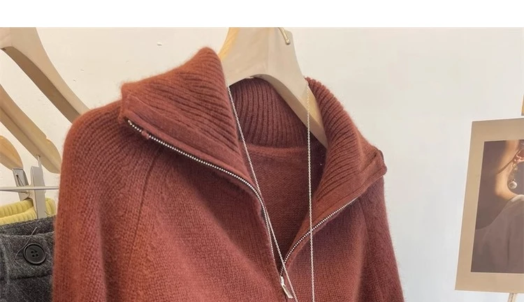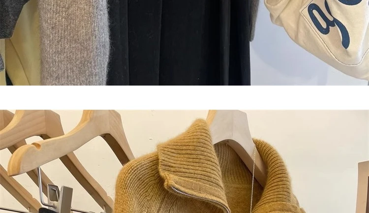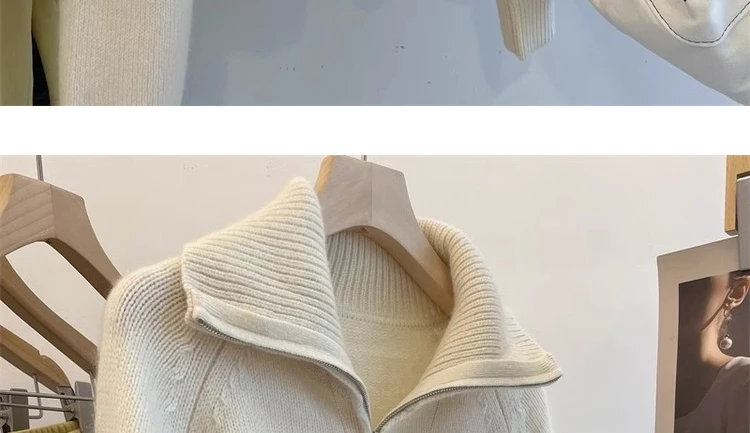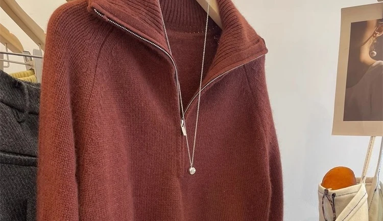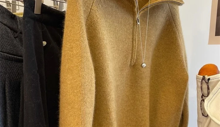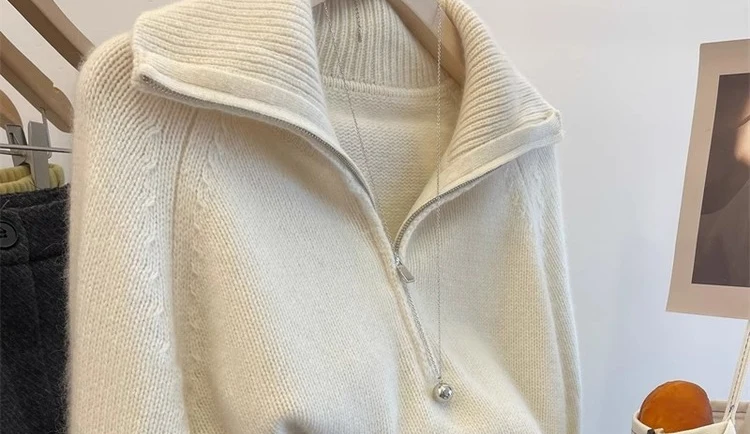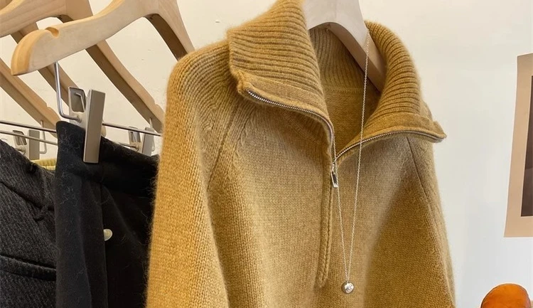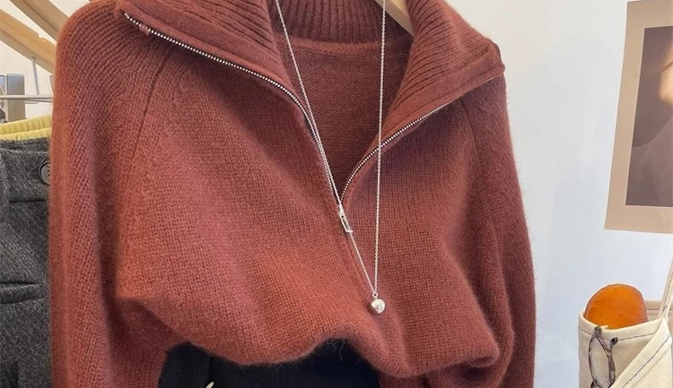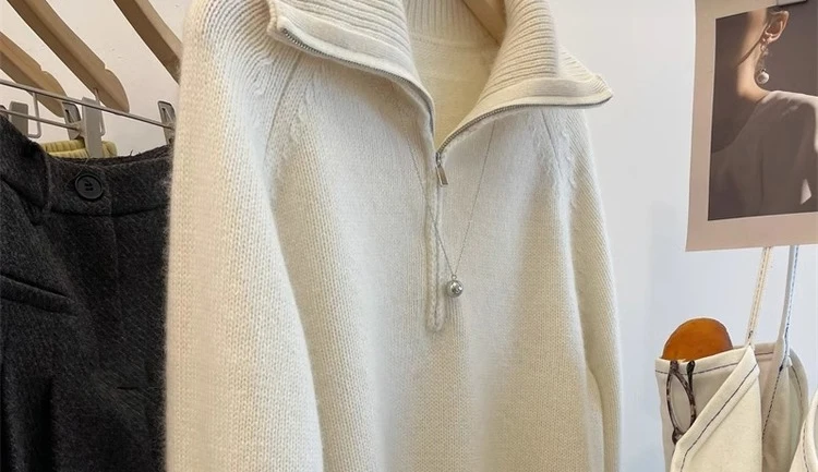 Grey Half Zipper Pullover Sweater for Women 2024 New Autumn Korean Style Long Sleeve Loose Casual Knitted Tops Female Clothing