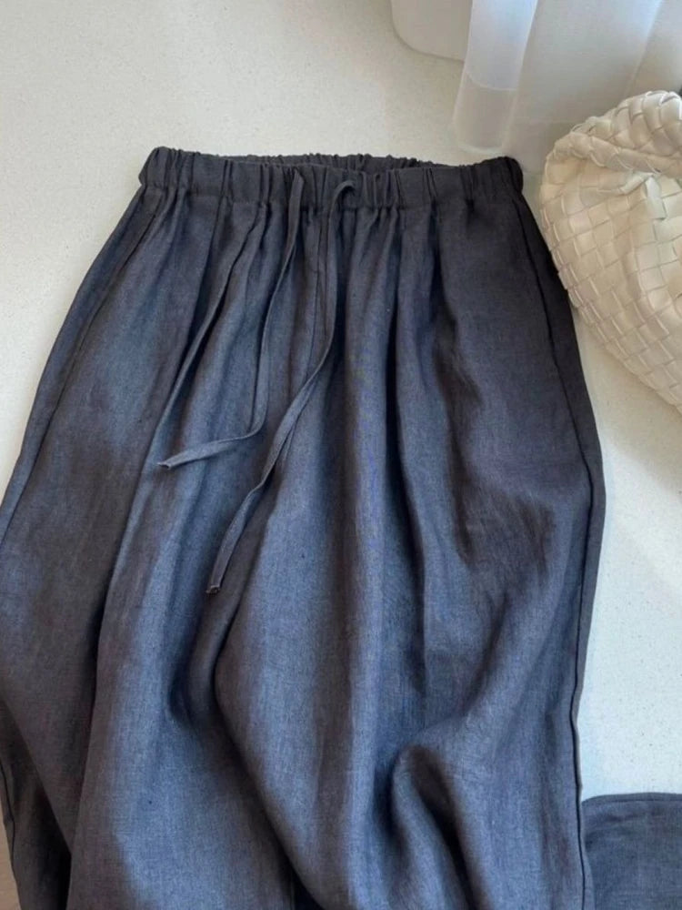 High Waisted Linen Wide Leg Pants for Summer Loose Comfort Breathable Floor Length Pants Leisure Simple Cotton and Linen Pants