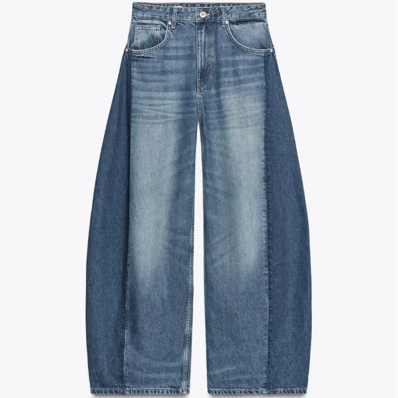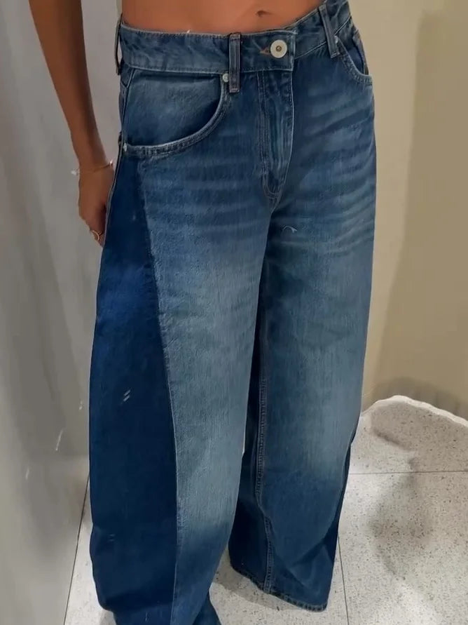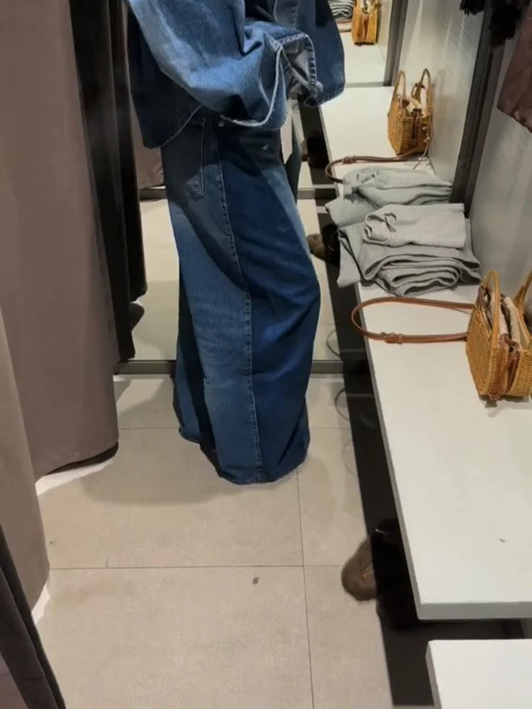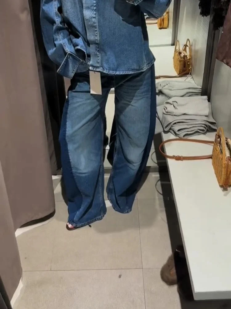 Loose High Waist Long Jeans Woman Spliced Baggy Long Denim Pants Casual Versatile Chic Women's New Early Autumn Fashion Trousers