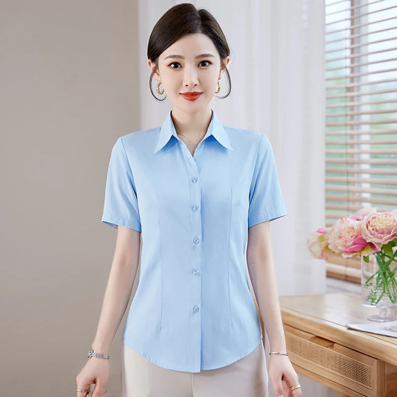 New Summer Short Sleeved Professional Formal Work Clothes Lining Women'S Fashion Temperament Versatile Commuting Collar Shirt