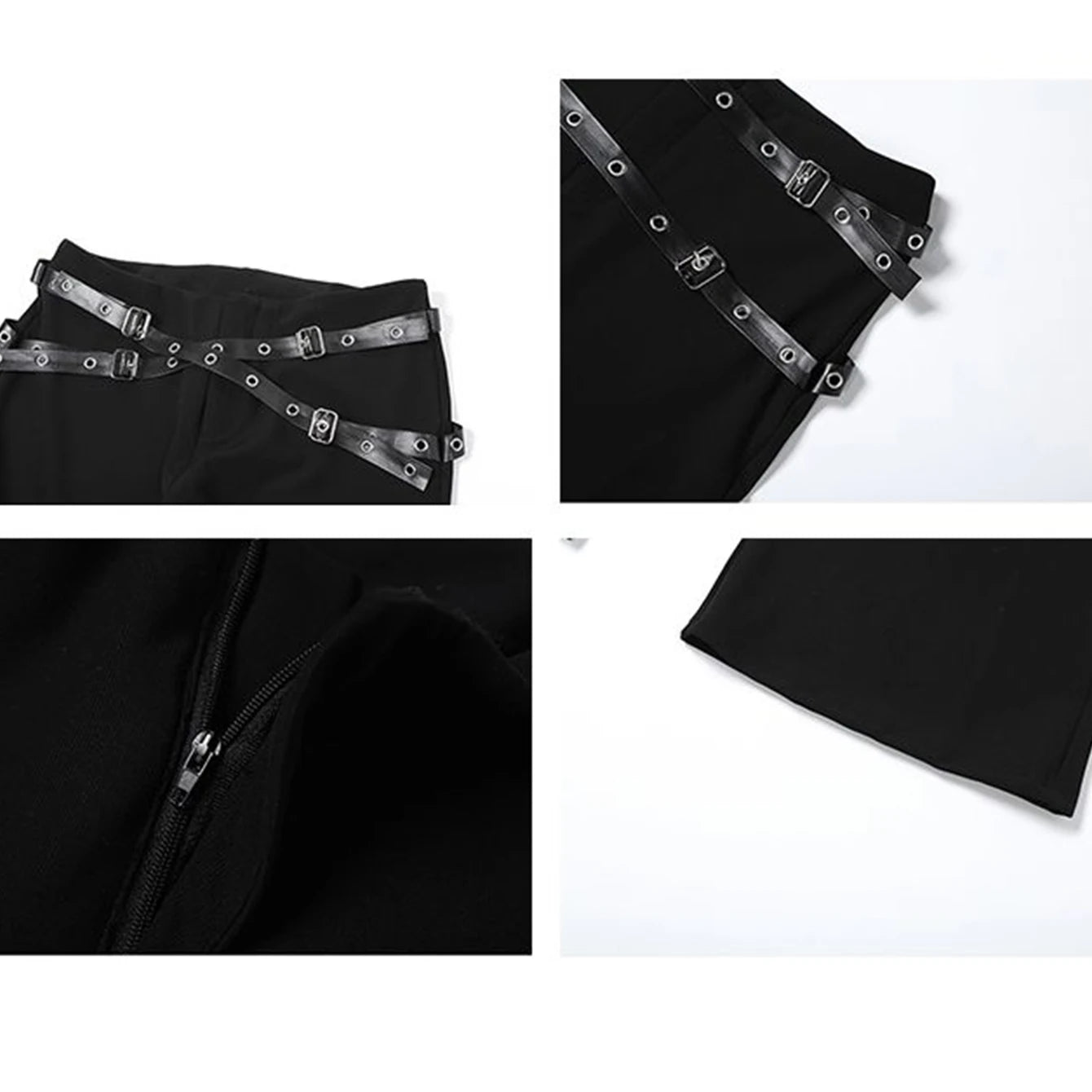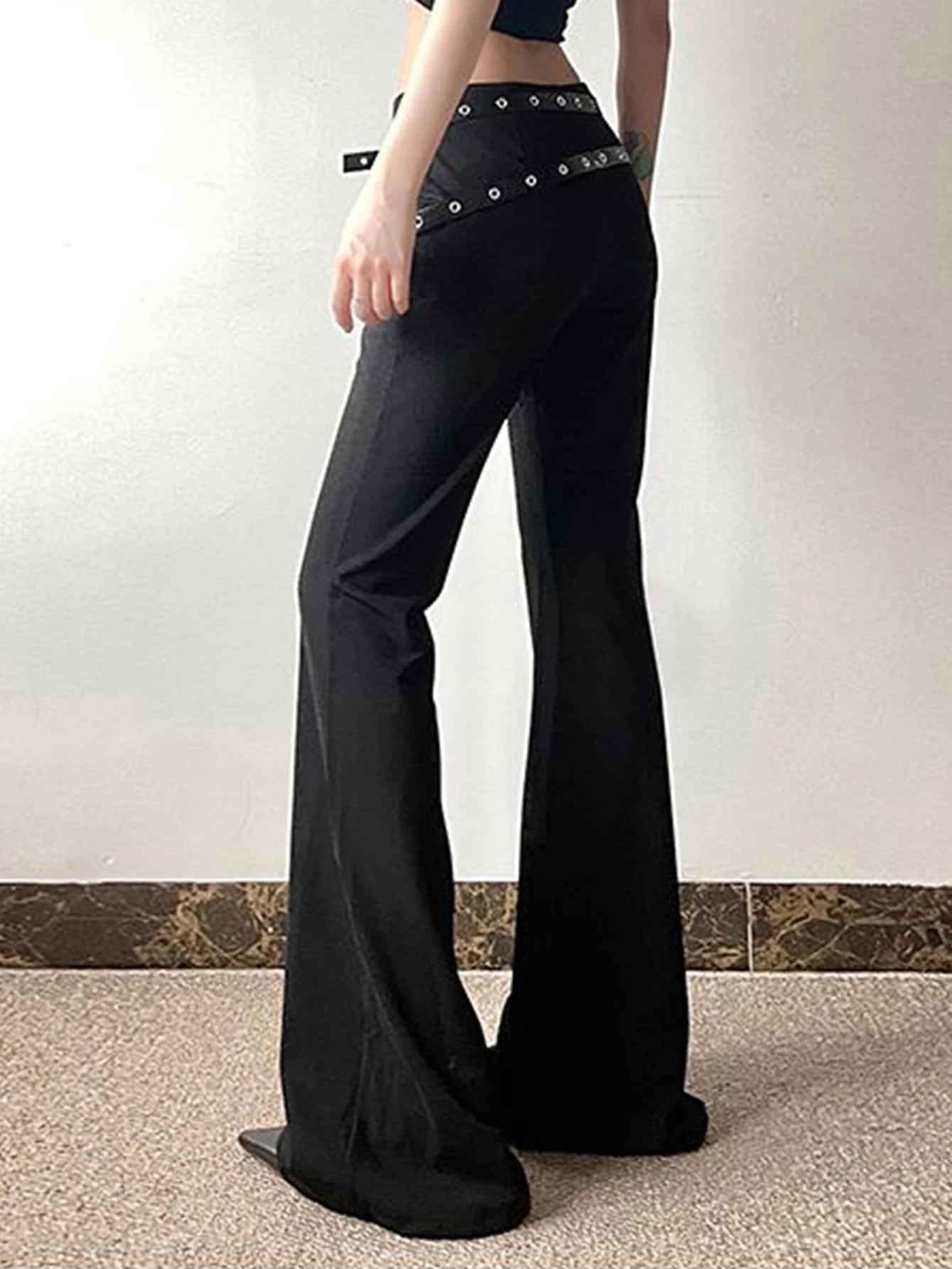 Summer New European And American Style Bell Bottoms Fashion Women's Fashion Trend Leather Buckle Waist Tight Trousers Woman