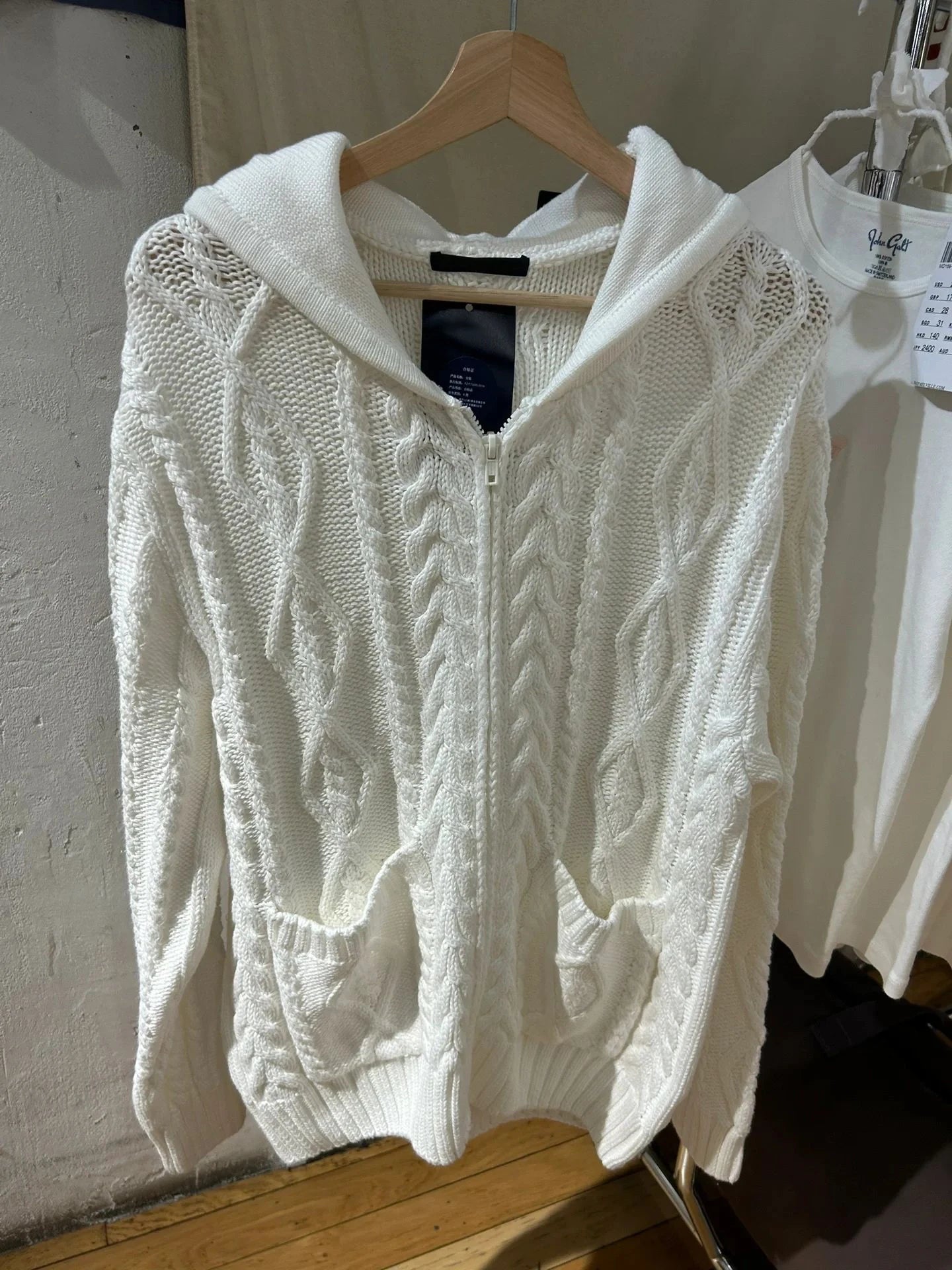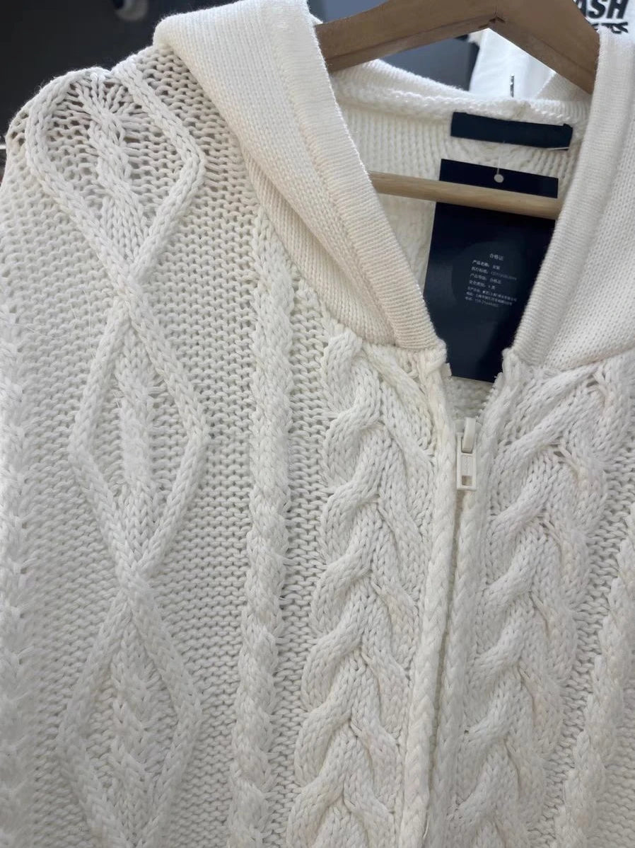 Twisted Flower Pockets Knit Sweater Cardigan Women Winter Long Sleeve Hooded Zip-up Hoodie Solid Simple Sweaters Coat Y2K Tops