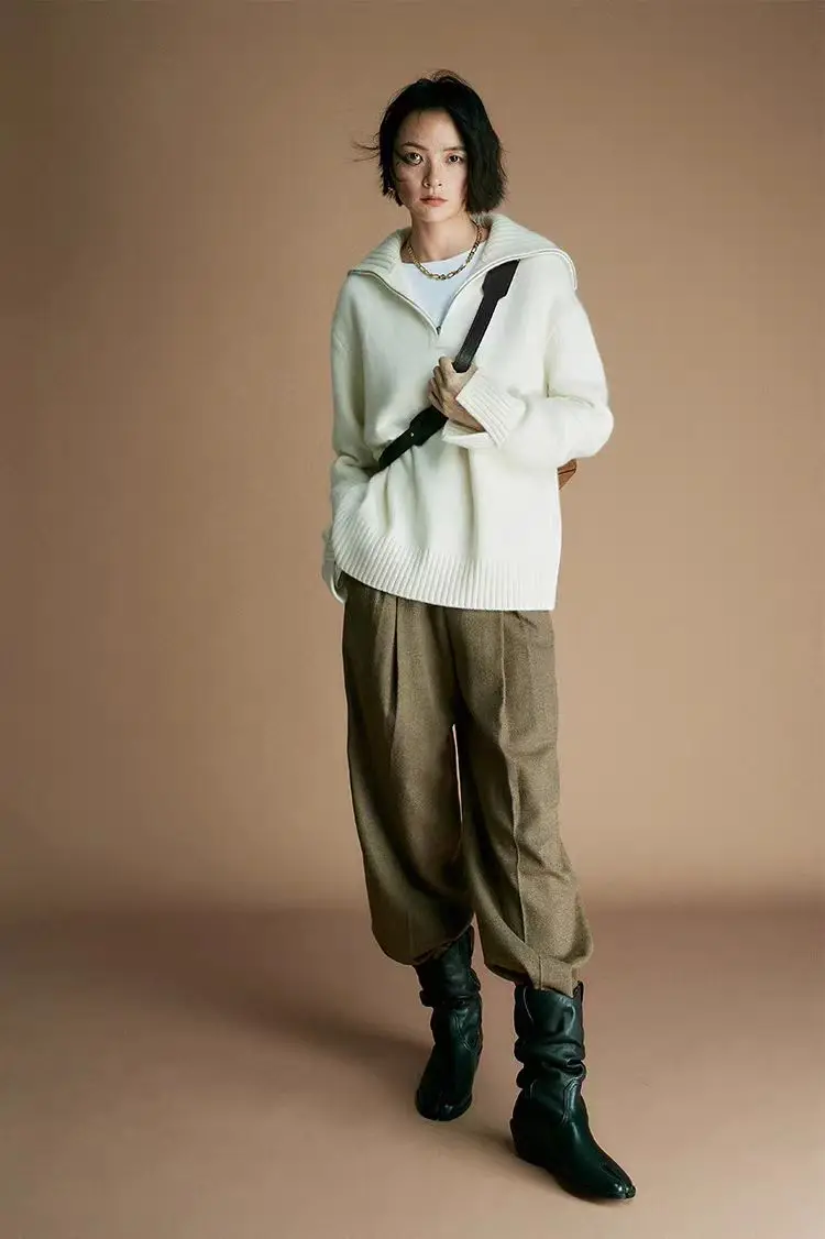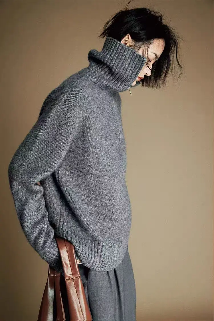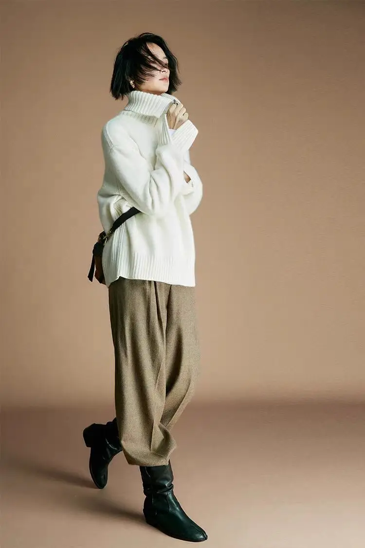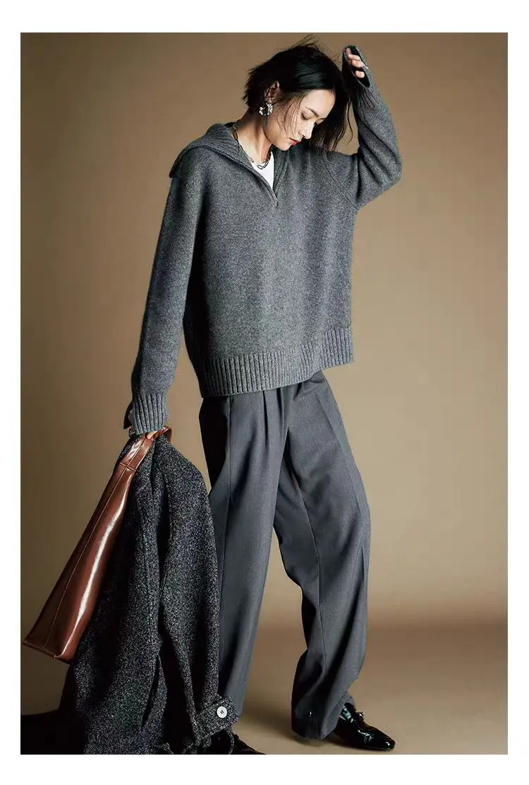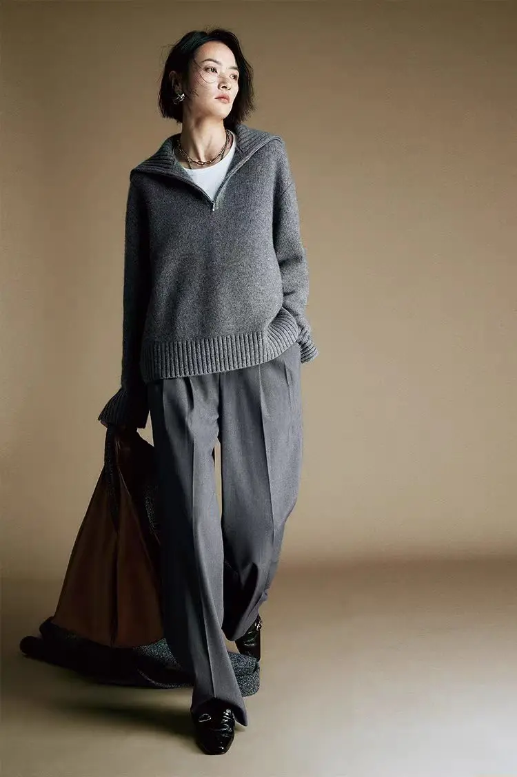 Women Merino Wool Sweater Half Zip Turtleneck Pullover Autumn Winter Casual Basic Knitwear Solid Color Regular Female Loose Tops