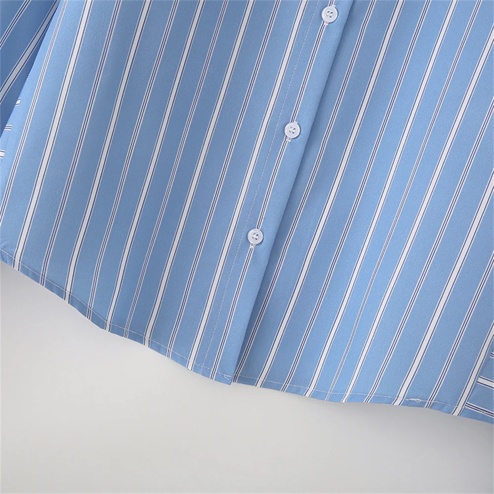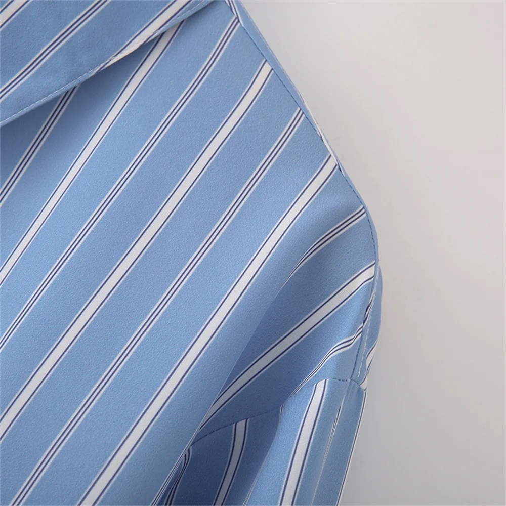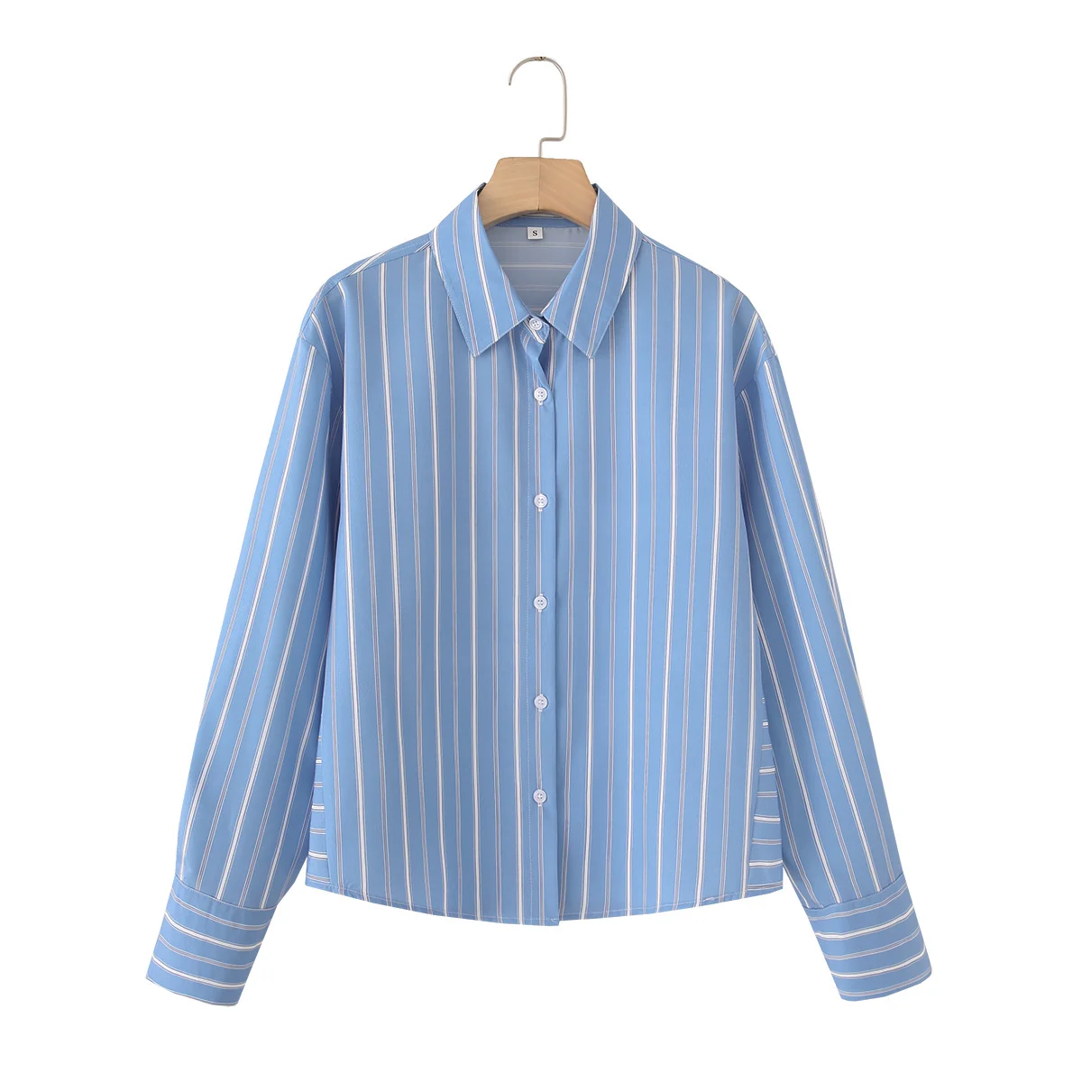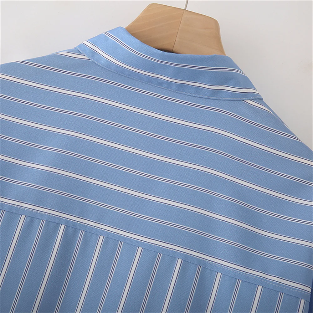 women's shirt fashionable and simple striped long sleeved lapel temperament summer new shirt