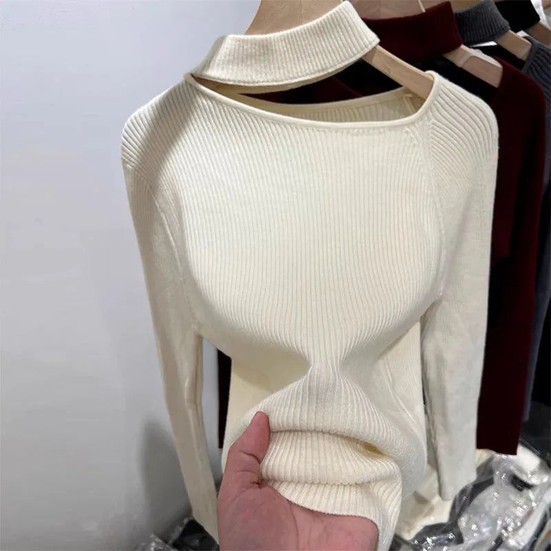 Autumn Korean Style Sweater Women Pullover Tops Off Shoulder Long Sleeve Knitted Sweaters Female Jumpers Solid Basic Sweater