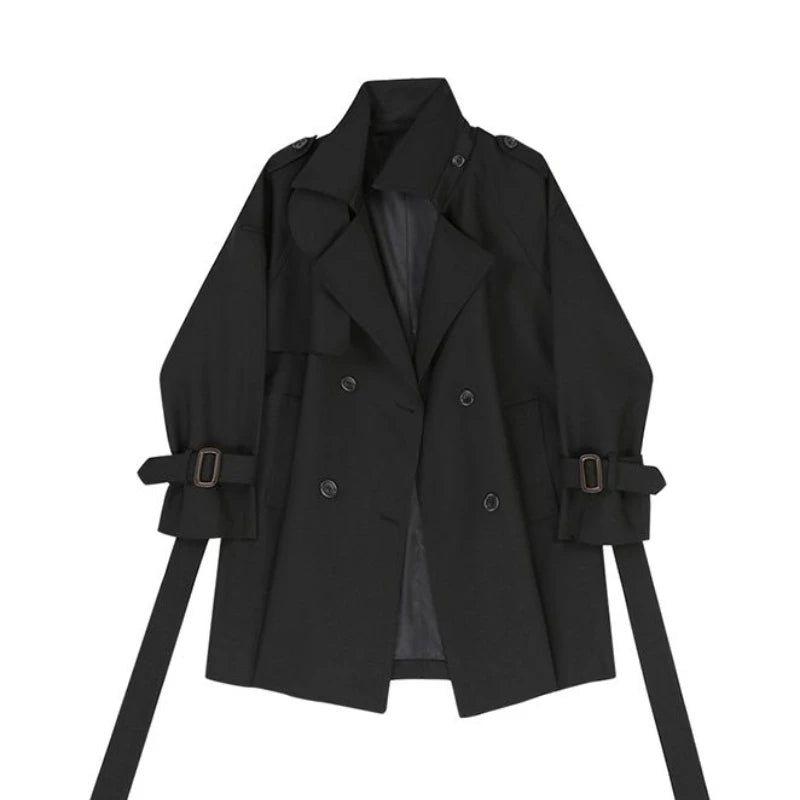 Autumn New High Fashion Short Versatile Coat Woman Classic Double Breasted Trench Coat Windbreak Korean Business Outerwear