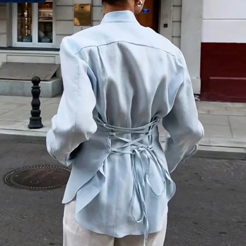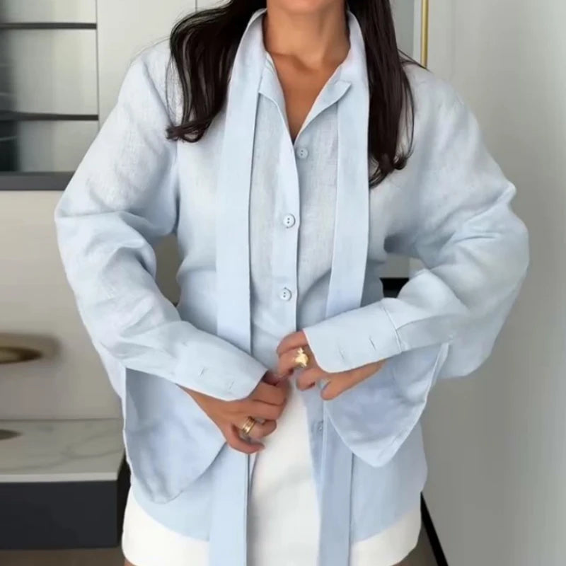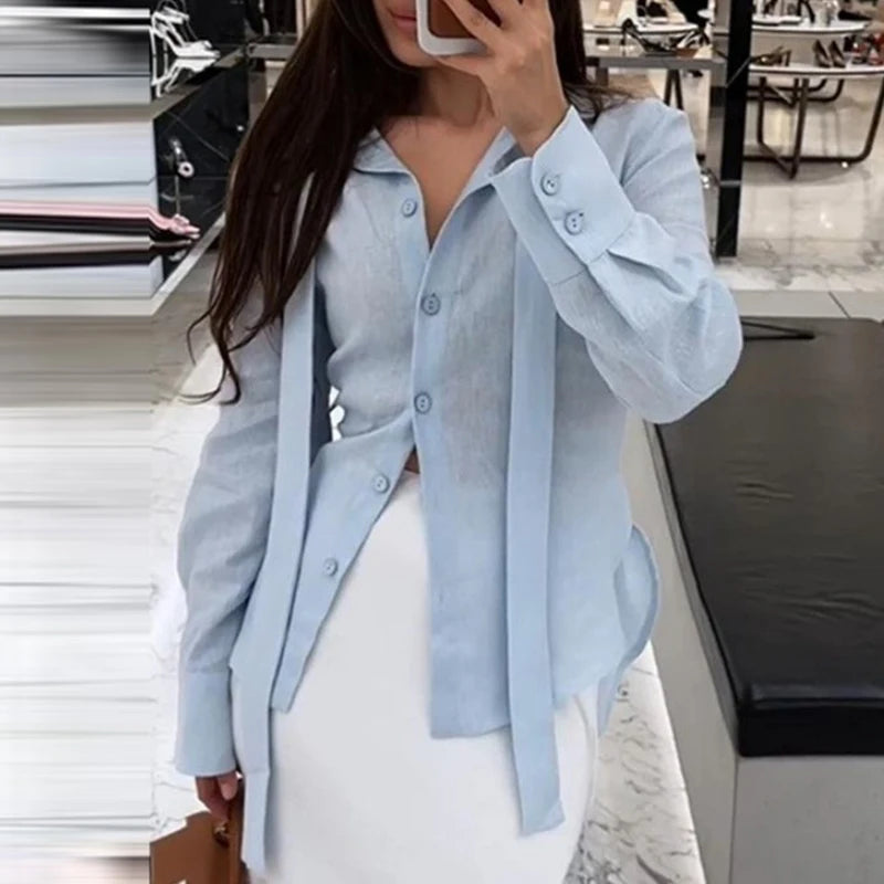 Autumn New Single Breasted French Style Commute Tops Fashion Solid Color Lace Up Women Shirts Elegant Long Sleeve Loose Blouse
