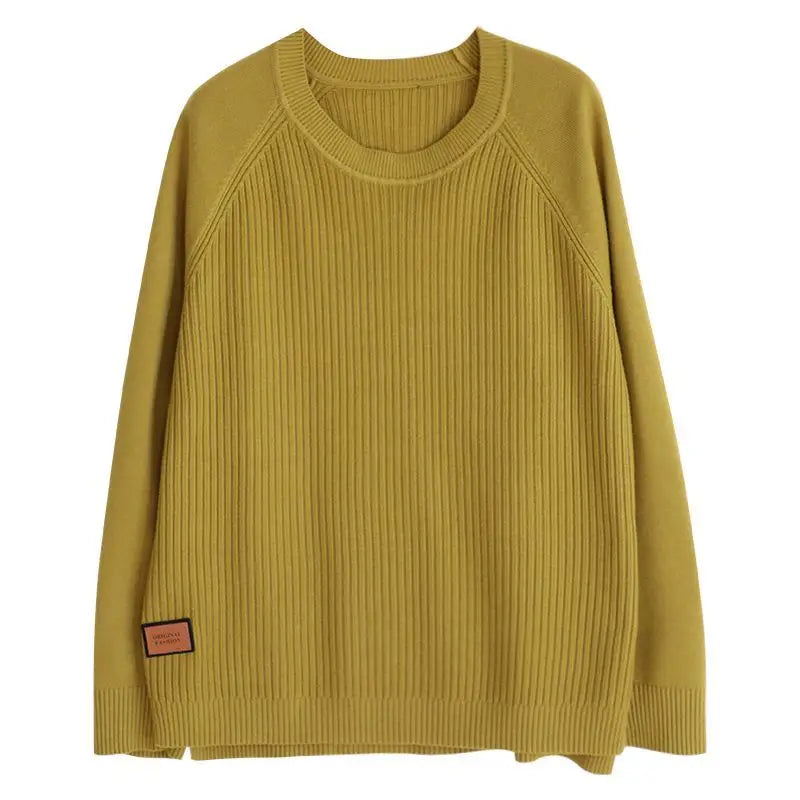 Autumn Winter Women New Sweater Solid Loose Korean Casual Simple Fashion Versatile Split Long Sleeve Basic Knitted Pullovers Top