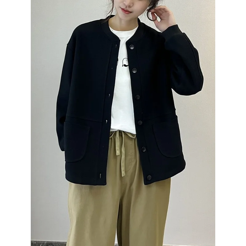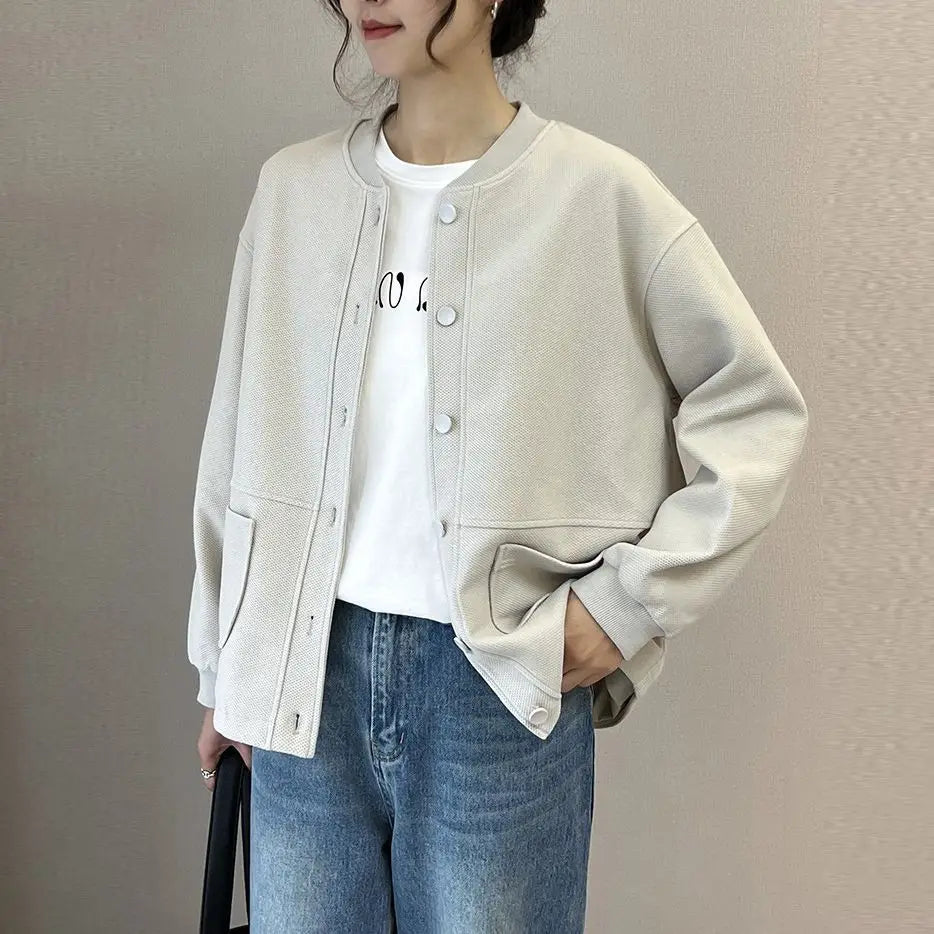 Baseball Uniform Jacket Short Jacket for Women Spring and Autumn Clothing Korean Loose New Style Versatile Round Neck Cardigan