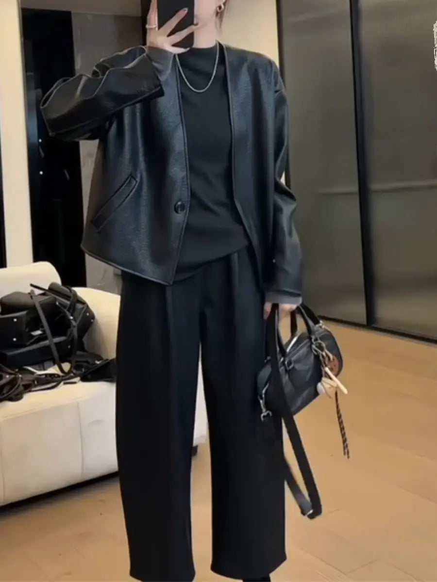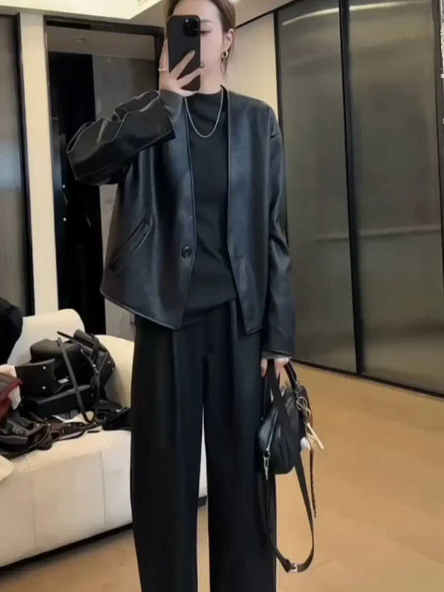 Black Short Pu Jacket For Women 2025 Spring And Autumn New Collection One Button Fashion Versatile Jacket Top