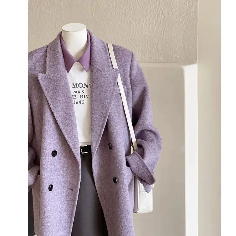 Gentle Purple wWoolen Coat For Women In Autumn And Winter 2025 New Woolen Coat With High-end Feel Small And Short Korean Style