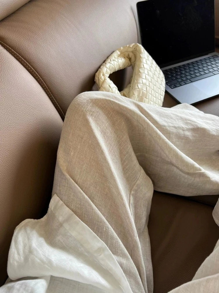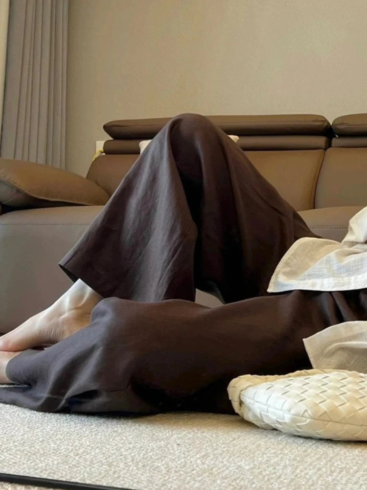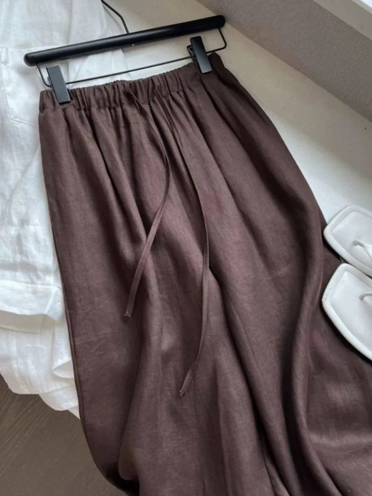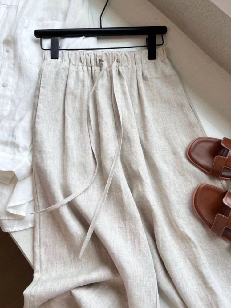 High Waisted Linen Wide Leg Pants for Summer Loose Comfort Breathable Floor Length Pants Leisure Simple Cotton and Linen Pants