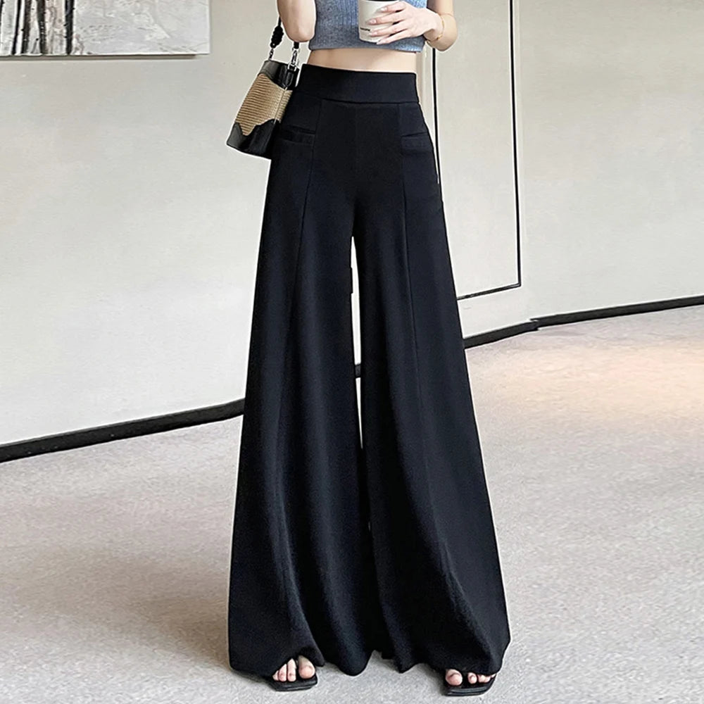 Korean style black wide leg pants for women in autumn and winter, high-end fashion, plus size wide leg pants, casual flared pant