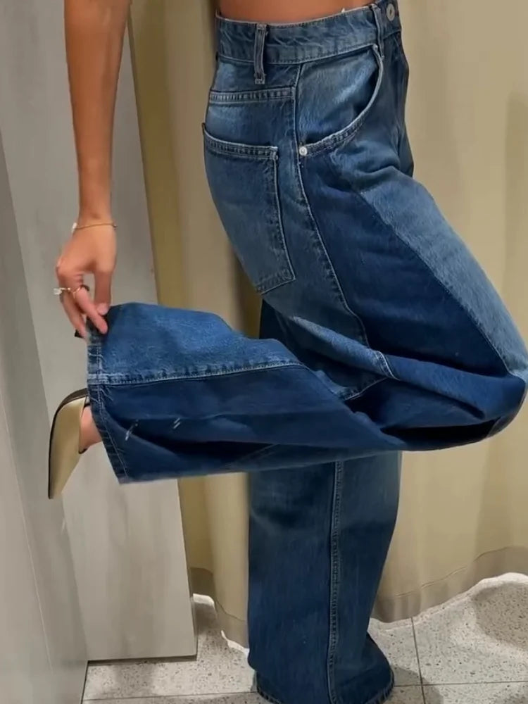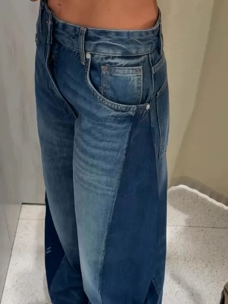 Loose High Waist Long Jeans Woman Spliced Baggy Long Denim Pants Casual Versatile Chic Women's New Early Autumn Fashion Trousers