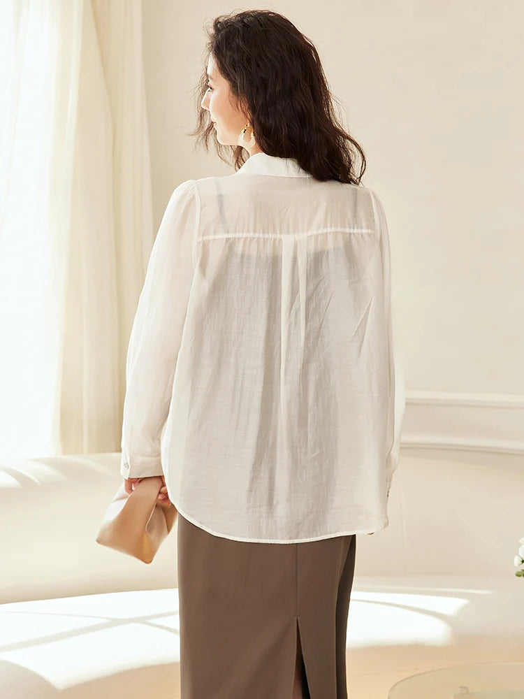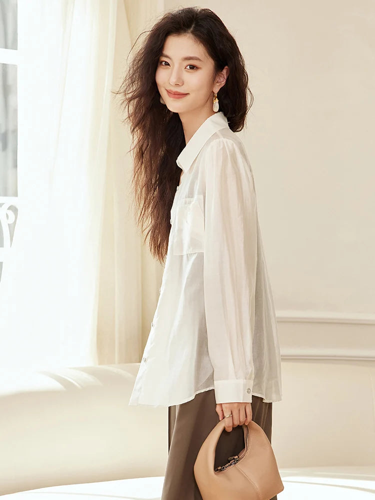 Summer 2025 Women's Beige Loose Lyocell Shirt Korean Style Sun Protection Thin Blouse for Fashionable Ladies