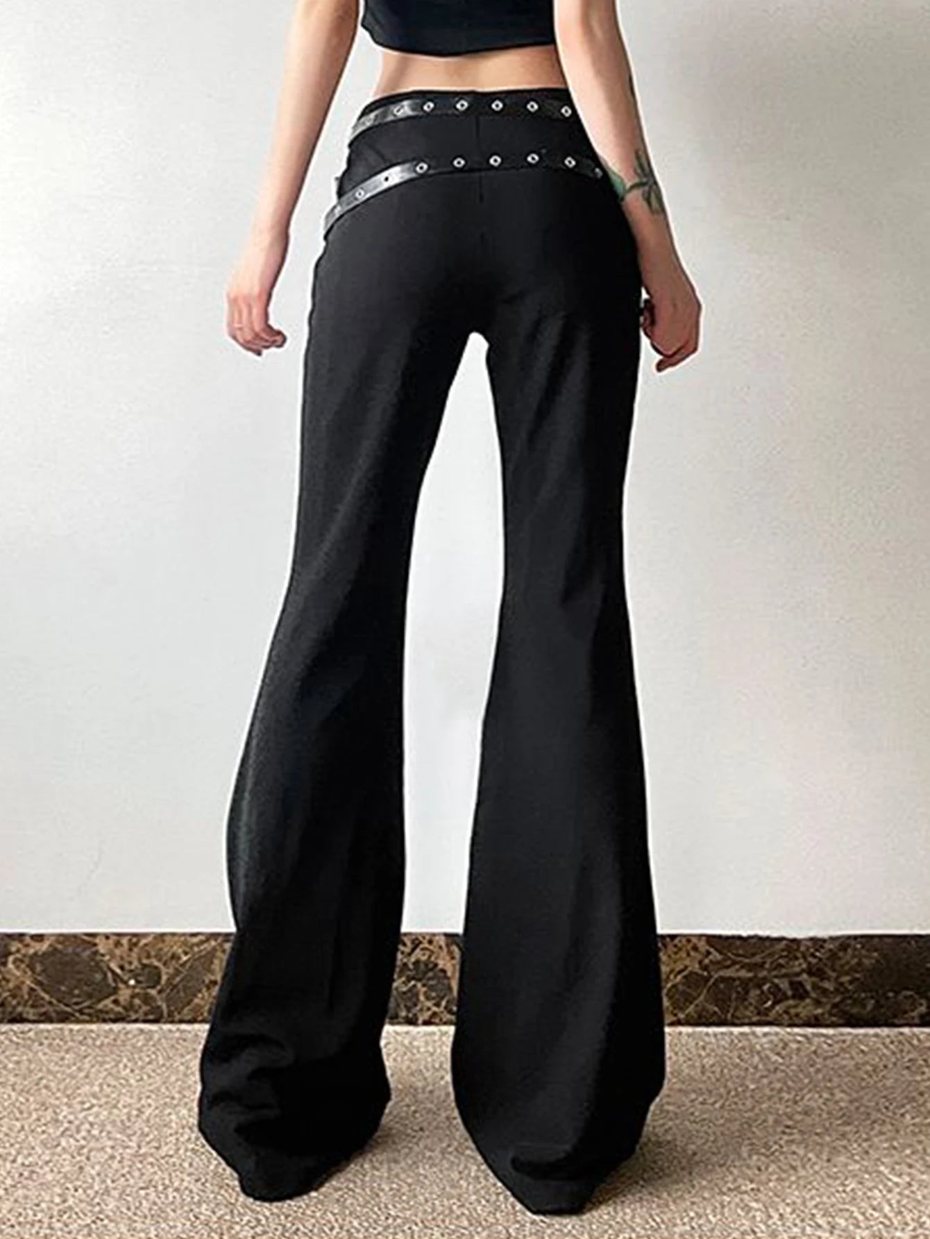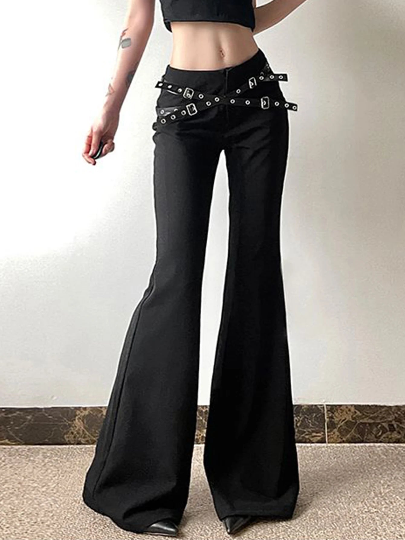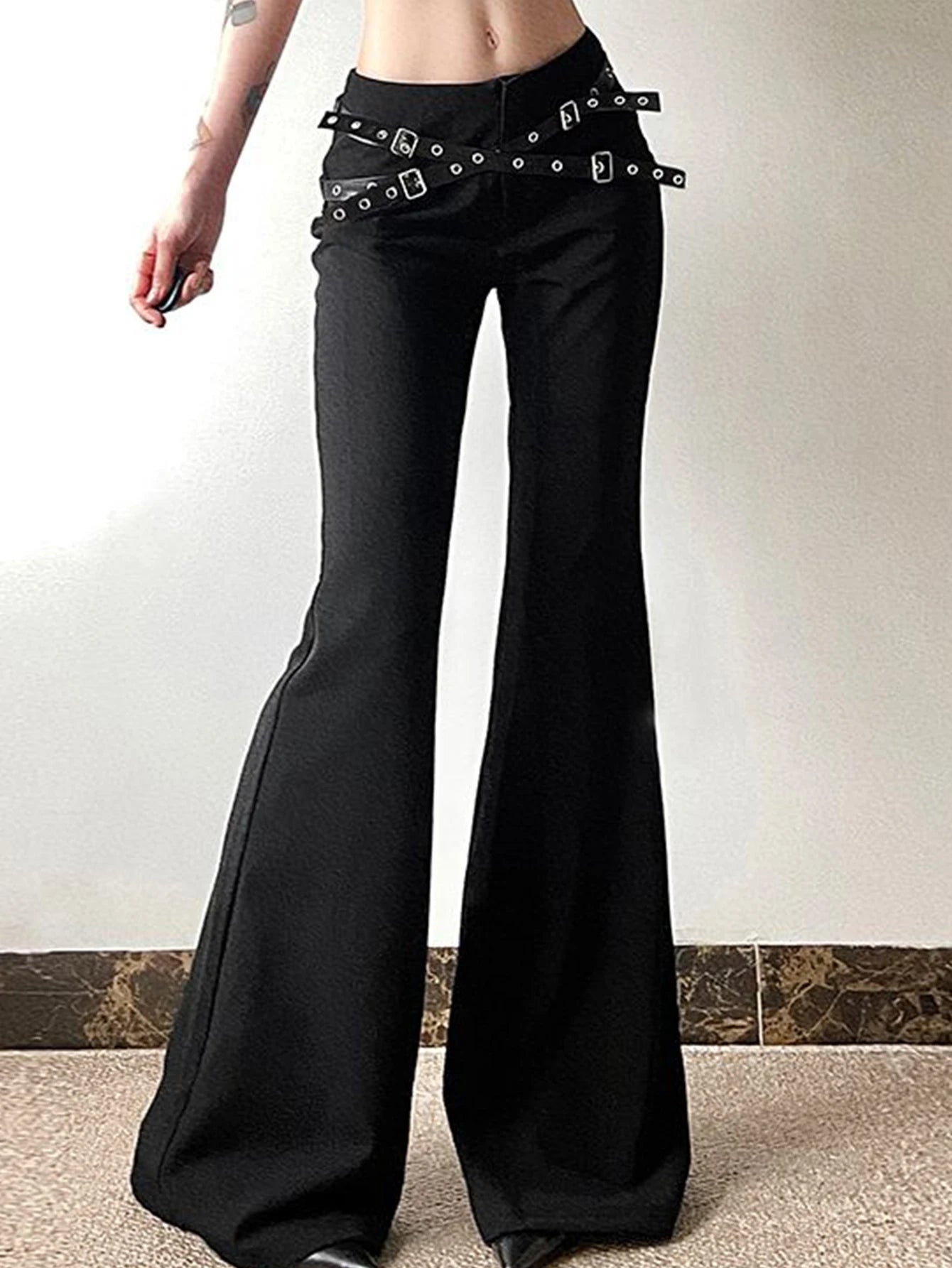 Summer New European And American Style Bell Bottoms Fashion Women's Fashion Trend Leather Buckle Waist Tight Trousers Woman