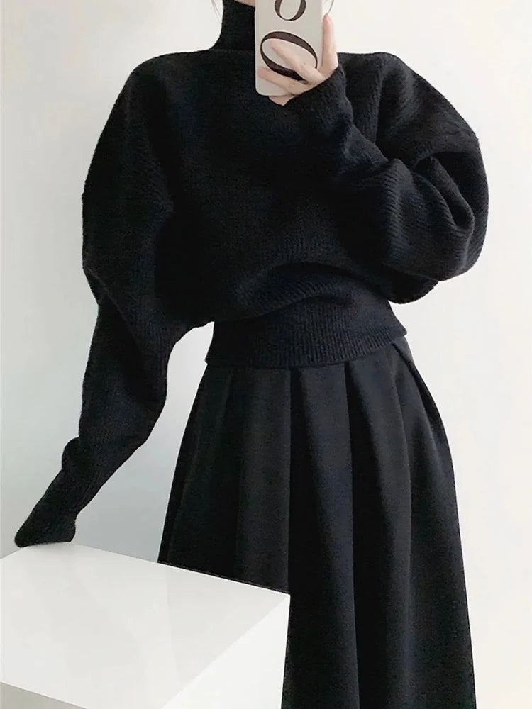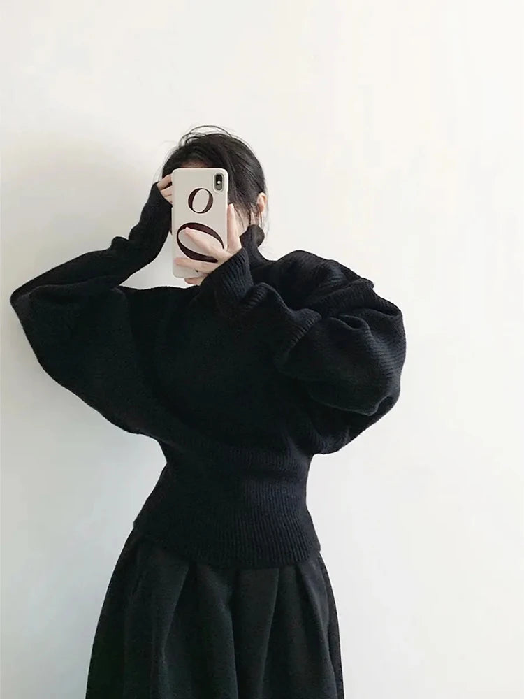 Women Turtleneck Sweater Solid Loose Lazy Wind Korean Vintage Long Sleeve Pullovers Spring Autumn Office Lady Casual Jumpers New